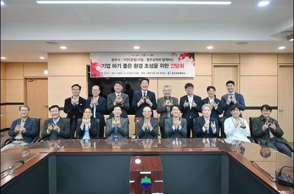 원주시는 11월 13일 오전 11시 시청 7층 회의실에서 2017년 이후 이전·창업한 기업 및 원주상공회의소와 함께 ‘기업 하기 좋은 환경 조성을 위한 간담회’를 개최했다.