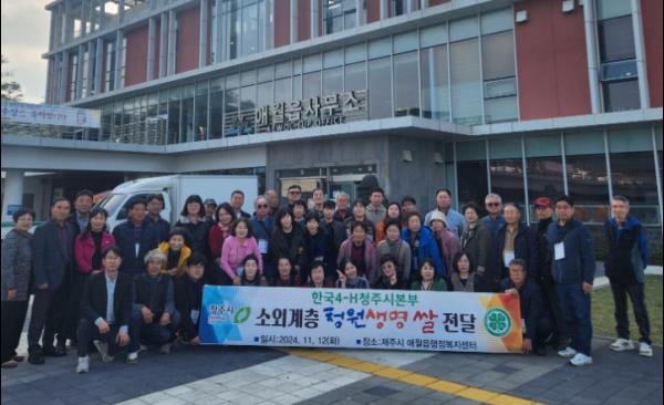 한국4-H청주시본부는 지난 12일 청주 지역 농산물인 청원생명쌀 350㎏을 애월읍 행정복지센터에 기탁했다.