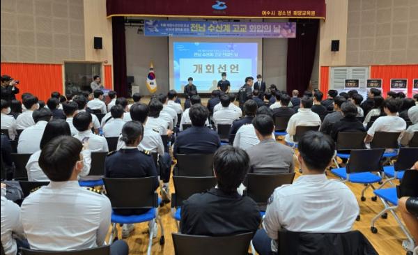 전라남도는 15일 여수시청소년해양교육원에서 수산계 고등학교 200여 명이 모여 가공식품 개발 생존수영 등 기량을 겨루면서 함께 소통하는 수산계 고등학교 화합의 날 행사를 개최했다.