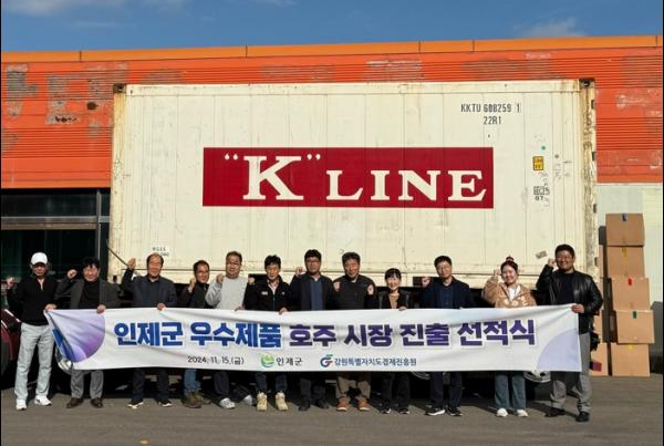 이날 선적식은 지난 10월 4일 개최된 ‘인제군 우수제품 호주 시장진출 수출상담회’에 이어 열린 것으로, 인제군 수출협회 이강열 회장과 강원특별자치도 경제진흥원, 관내 중소기업 임·직원 등이 참석했다.