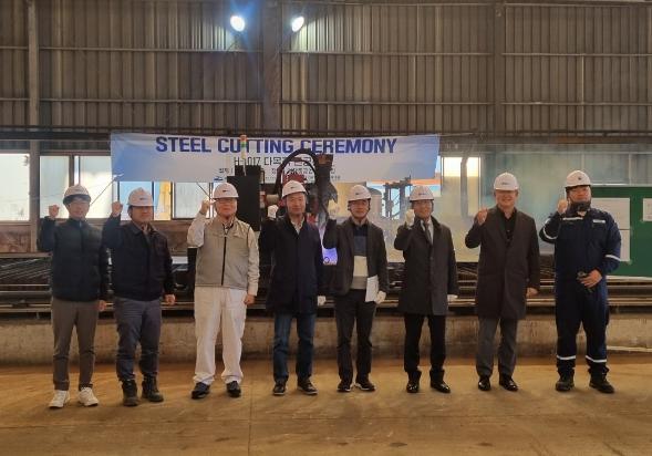 강재절단식 이후 용골거치, 턴오버(구조물 뒤집기) 등 건조 과정을 거쳐 내년 11월에 인도될 예정이다.