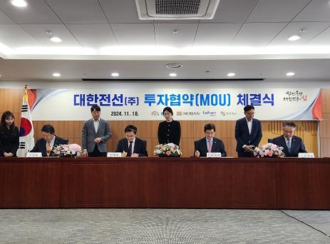 이날 충남도청에서 열린 협약식에는 오성환 당진시장, 김태흠 충남도지사, 김선규 호반그룹 회장, 송종민 대한전선㈜ 대표이사를 비롯한 관계자가 참석했으며, 대한전선㈜ 해저케이블 제2공장 설립에 상호 합의했다.