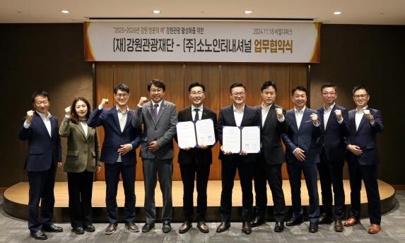 이번 협약의 주요 내용은 △국내외 관광객 유치를 위한 홍보 강화 △강원 지역 관광 자원 및 프로그램 개발과 홍보 △소노인터내셔널 시설을 중심으로 한 특화 관광상품 기획 및 공동 프로모션 △친환경·지속 가능한 관광 모델 개발을 통한 지역사회 기여 △관광 데이터 정보의 상호 공유로 효과적인 마케팅 전략 수립 등이다.