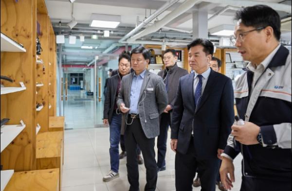 조일교 아산시장 권한대행이 18일 디와이오토㈜(대표이사 임연찬)를 방문해 건의 사항을 청취하고 자동차 부품 생산 현장을 둘러봤다.