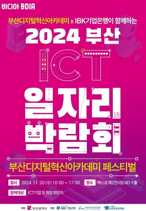 부산시와 부산정보산업진흥원, 아이비케이(IBK)기업은행, 13개 부산지역대학은 내일(20일) 오전 10시부터 오후 5시까지 벡스코 제2전시장에서 '2024 부산디지털혁신아카데미 페스티벌'을 개최한다고 밝혔다.