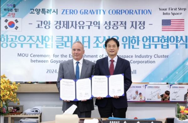 고양특례시는 지난 18일 미국의 제로 그래비티 코퍼레이션과 고양 경제자유구역 지정 협력 및 항공우주산업 클러스터 조성을 위한 업무협약을 체결했다고 밝혔다.