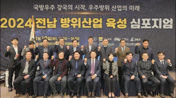 전라남도는 19일 순천 에코그라드 호텔에서 국방·우주 분야 전문가와 지역방산기업, 도민 등 100여 명이 참석한 가운데 전남 방위산업 육성 방안 논의를 위한 2024 전남 방위산업 육성 심포지엄을 개최했다.