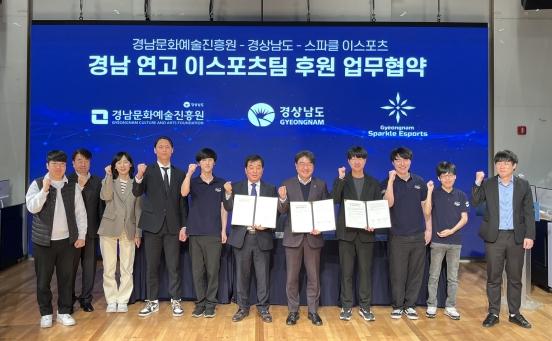 경상남도는 경남 이스포츠 생태계 조성과 저변 확대를 위해 19일(오후 2시) 경남이스포츠상설경기장에서 경남문화예술진흥원, 스파클이스포츠와 함께 ‘경남 연고 이스포츠팀 후원에 관한 업무협약’을 체결했다.
