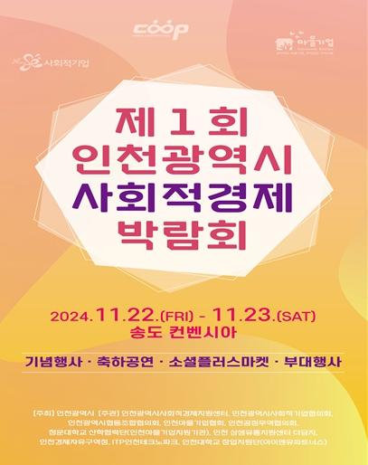 인천광역시는 오는 11월 22일부터 23일까지 송도컨벤시아에서 ‘제1회 인천광역시 사회적경제 박람회’를 개최한다고 밝혔다.