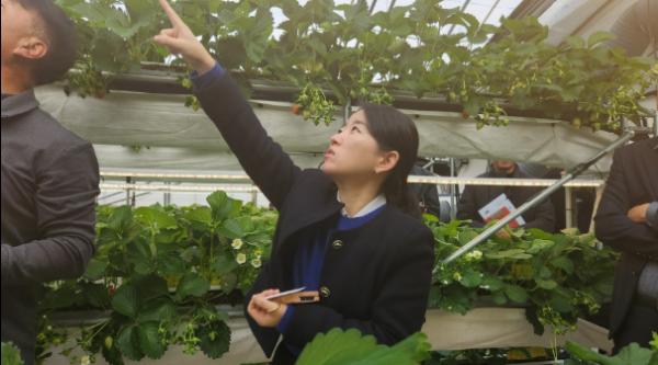 이 날 방문한 농가는 단동형 다단 재배를 통해 210% 이상 정식을 하고 있는 스마트팜 도입 농가이며, 초촉성 재배방식이라는 신기술을 적용하여 조기 수확과 농가소득 향상에 앞장서고 있는 곳으로 논산시의 선도적인 농업기술을 적용하여 딸기를 재배하고 있다.