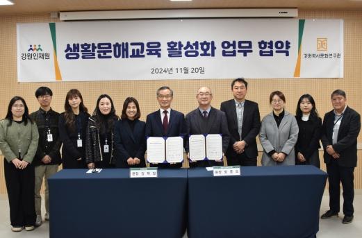 강원인재원은 11월 20일, 강원역사문화연구원과 생활문해교육 활성화를 위한 공동협력 업무협약을 체결했다고 밝혔다.