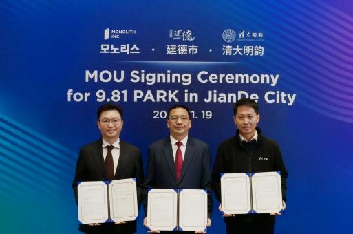 테마파크 전문기업 모노리스는 지난 19일 중국 저장성의 대표 관광도시 젠더(建德)시, 투자사 썬라이즈칭화캐피탈과 함께 9.81파크 조성을 위한 3자 전략적 업무협약(MOU)을 체결했다.