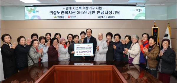 이에 김주수 의성군수는 “손수 만든 물품으로 마련한 성금을 어려운 이웃을 위해 기탁하여 주셔서 감사하다”라며 “기부하여 주신 성금은 지역사회에 도움이 필요한 이들에게 잘 전달하겠다”라고 전했다.