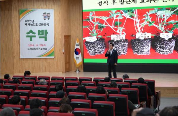 이번 교육은 변화하는 농업여건에 대응하기 위한 핵심 기술 위주로 편성되었으며, 농업인의 수요를 반영하고 논산지역 수박 영농 시기에 맞춰 11월에 실시하게 됐다.
