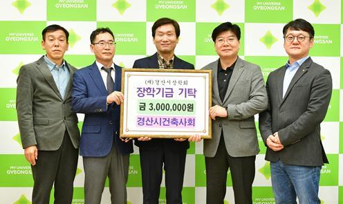 (재)경산시장학회는 경산시건축사회가 20일 지역 인재 육성을 위해 장학금 300만 원을 기탁했다고 밝혔다.