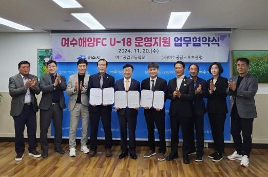 여수시가 여수공업고등학교, (사)여수공공스포츠클럽과 유소년축구단 ‘여수해양FC U-18팀’ 선수육성 지원을 위해 손을 맞잡았다.