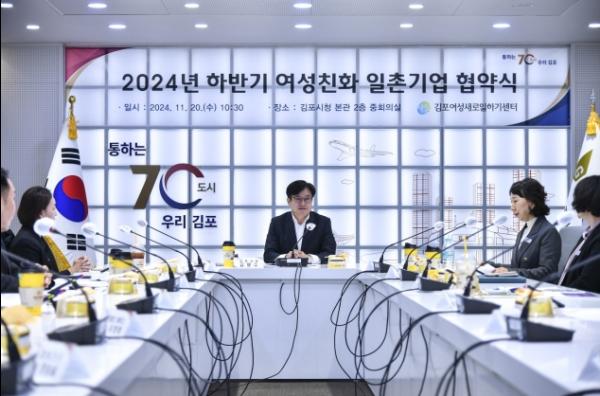 김포시는 지난 20일 일촌기업 대표 및 임직원이 참석한 가운데 2024년 하반기 여성친화 일촌기업 협약식을 개최했다.