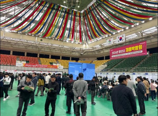 양산시와 동원과학기술대학교 LINC3.0사업단, 영산대학교 대학일자리플러스센터가 공동으로 주관하고 관내 일자리 유관기관이 참여한 『2024년 양산시 채용박람회』가 지난 19일 양산종합운동장 실내체육관에서 구직자 700여명이 참여한 가운데 성황리에 마무리됐다.