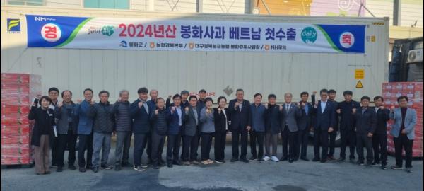 봉화군은 지난 22일 대구경북능금농협 봉화경제사업장에서 2024년산 봉화사과의 베트남 수출 선적식을 가졌다.