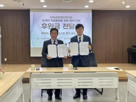 강화군장애인복지관은 지난 20일, 복지관 강당에서 예수 그리스도 후기 성도 교회와 장애인 직업훈련을 위한 스마트팜 유리 온실 건축을 위한 업무협약을 체결했다.