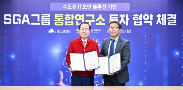 대구광역시는 11월 25일 오전 11시 30분 대구광역시 산격청사에서 에스지에이㈜(대표 박재한)와 수성알파시티 내 ‘SGA그룹 5개 계열사 통합연구소’ 구축을 위한 투자협약을 체결했다.