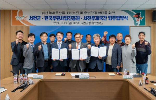서천군은 지난 25일 한국우편사업진흥원, 서천우체국과 함께 서천군 농수특산물 소비촉진과 판매 확대를 위한 업무협약을 체결했다.