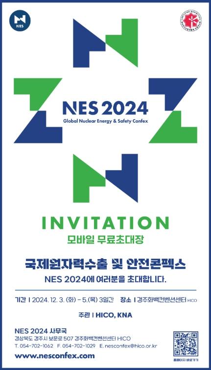 국내 유일 원전 수출 및 안전 전문 국제전시회인 ‘NES 2024’가 오는 12월 3일 화요일부터 5일 목요일까지 경주화백컨벤션센터와 한국원전수출산업협회 공동주관으로 개최된다.