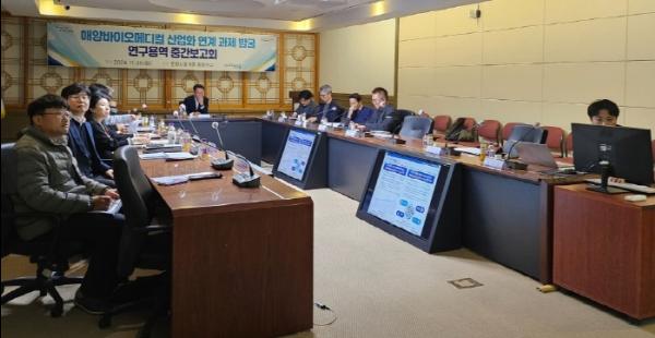 이날 중간보고회는 해양바이오산업의 성장 가능성을 평가하고, 산업화 국비 과제 발굴로 미래 전략을 논의하기 위해 마련된 자리로 해양바이오 분야 전문가, 지자체 관계자, 용역 수행기관 등 20여 명이 참석한 가운데 진행됐다.