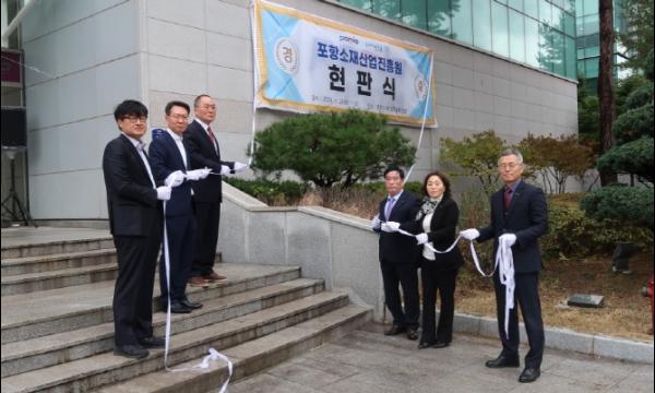 포항금속소재산업진흥원이 ‘포항소재산업진흥원’으로 명칭을 변경하고, 새로운 도약을 알리는 현판식을 26일 개최했다.