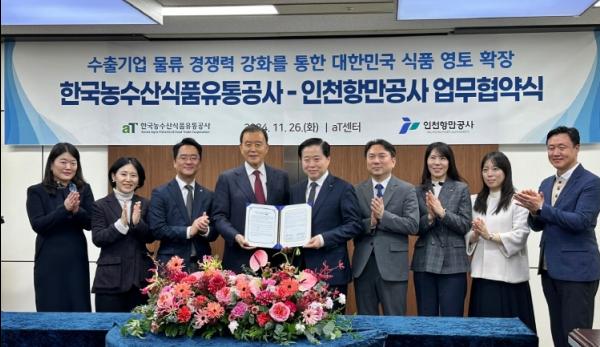 인천항만공사는 26일 양재aT센터(서울 서초구 강남대로 27)에서 한국농수산식품유통공사와 ‘한국 농수산식품 수출 확대 및 수출기업 물류 경쟁력 강화를 위한 업무협약’을 체결했다고 밝혔다.