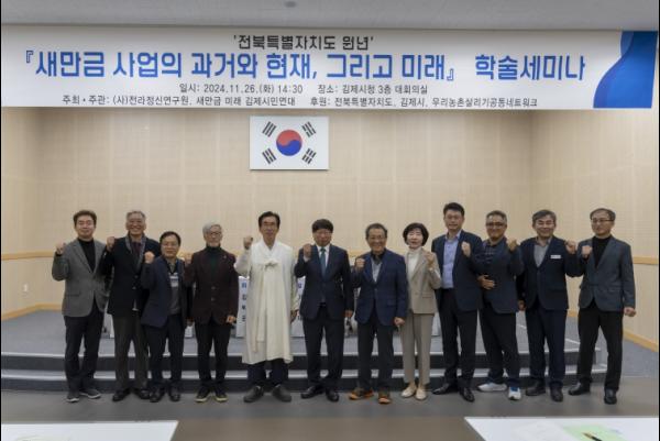 새만금 미래 김제시민연대는은 (사)전라정신연구원과 공동으로 26일 14시 30분 김제시청 3층 회의실에서 전북특별자치도 원년 『새만금 사업의 과거와 현재, 그리고 미래』라는 주제로 학술세미나를 개최했다고 밝혔다.
