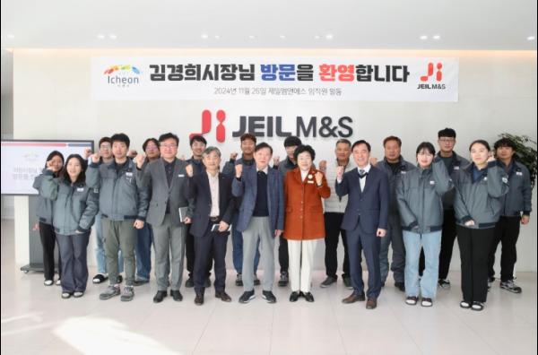 김경희 이천시장은 지난 26일 이천시 부발읍 가산리에 있는 ㈜제일엠앤에스 공장을 방문하여 기업체 관계자를 만나 애로사항을 청취하고 현장을 둘러보며 회사 관계자를 격려하는 자리를 가졌다.