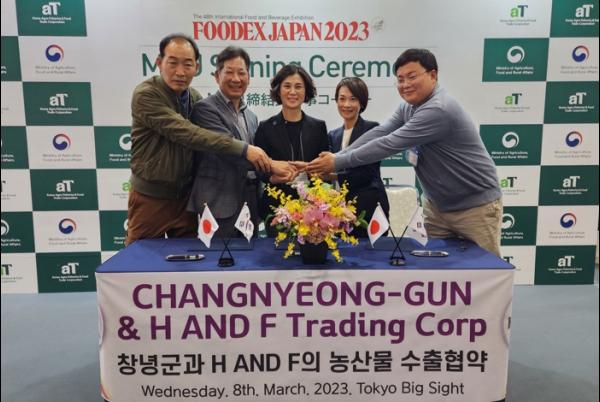 창녕군은 지난 8일, 일본 도쿄에서 개최되는‘동경 식품 박람회(FOODEX 2023)’에 참가해 신선 농산물 200만 달러(한화 약 26억 원)를 수출하는 업무협약(MOU)을 체결했다.
