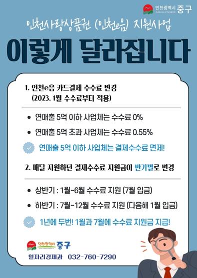 인천광역시 중구는 관내 소상공인의 경영 안정화와 지역경제 활성화를 위해 시행하던 ‘인천e음 결제수수료 지원사업’이 변경된다고 9일 밝혔다.