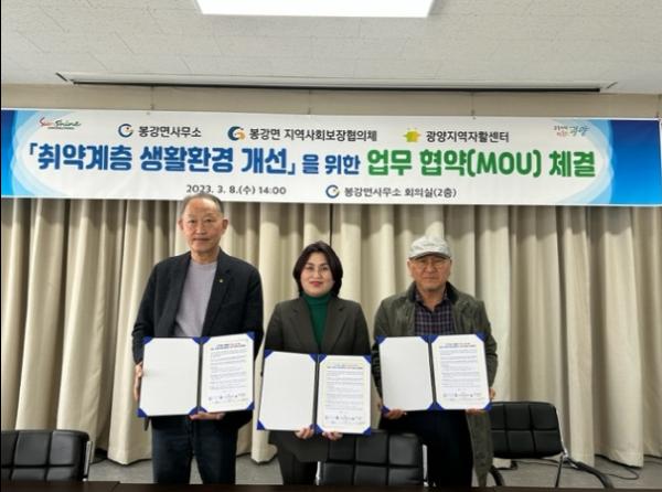광양시 봉강면·지역사회보장협의체는 지난 8일 광양지역자활센터와 봉강면사무소에서 취약계층 ONE-STOP 이불세탁 지원사업 활성화를 위한 업무협약을 체결했다고 밝혔다.