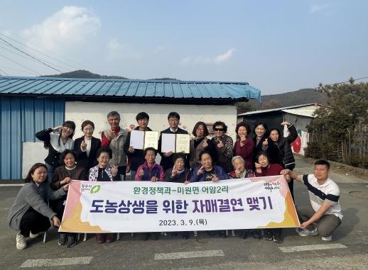 청주시 환경정책과가 9일 미원면 어암2리와 자매결연 협약행사를 가졌다.