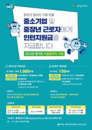 올해 사업참여 대상은 근로자 수 5인 이상 300인 미만의 경기도 내 중소?사회적 기업이며, 최종 선정 업체는 4월 17일부터 도내 베이비부머(만 40세 이상 65세 미만) 구직자를 매칭 받고, 최대 6개월까지 인건비를 지원받게 된다.