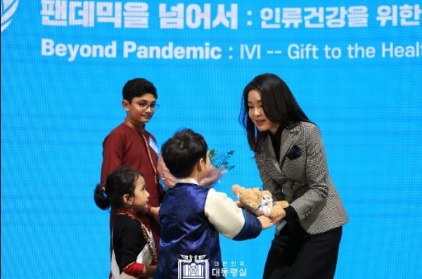 김 여사는 “코로나19 등 질병 예방에 중요한 역할을 해온 국제백신연구소 한국후원회의 명예회장을 맡게 되어 영광스럽다”고 말하고, “백신 개발과 보급 지원을 위해 최선을 다해 활동하겠다”며 IVI 한국후원회 명예회장직을 수락했다.