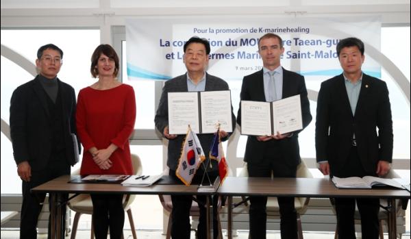 서해안권 유일의 해양치유센터를 건립 중인 태안군이 프랑스의 대표 해양치유 기업 ‘레 테름 마랭 드 생말로(Les Thermes Marines de St-Malo)’와 업무협약을 맺고 해양치유 산업의 성공적인 추진을 위한 의미 있는 발걸음을 내디뎠다.