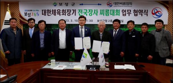 협약식에는 김철우 보성군수, 황경수 대한씨름협회장, 이광수 보성체육회장, 김경열 보성군씨름협회장 등 10여 명이 참석했다.