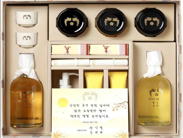 윤석열 대통령은 '24년 추석을 맞아 국가와 사회발전을 위해 헌신한 각계 원로, 제복 영웅·유가족, 사회적 배려 계층 및 체코 원전 수주 유공자 등 각계 인사들에게 전통주와 화장품 세트를 전달할 계획이다.