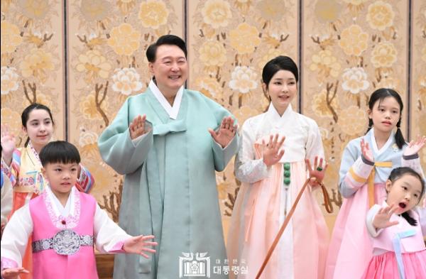윤석열 대통령 부부는 한가위 명절 영상을 통해 넉넉하고 풍요로운 한가위를 바라는 대국민 메시지를 전했다. 대통령 부부는 올해 한가위 영상에서 다문화가정 어린이들과 함께 인사를 전했다. 다양한 우리 국민이 함께 어우러져 행복한 명절을 보내시길 기원하는 의미이다.