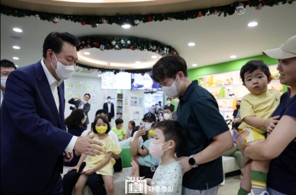 대통령은 병원 입구에 도착해 마스크를 착용하고 정성관 우리아이들의료재단 이사장의 안내에 따라 외래 진료구역으로 이동했다. 대기실에는 70-80명 가량의 소아 환자들이 진료를 기다리고 있었습니다. 정 이사장은 "배후 진료가 가능한 병원들과 협업해 중증 아이들을 신속히 치료하고 있다"며 "연휴 기간이었던 지난 16일 오전에도 간수치가 급상승한 아이를 실시간 소통채널을 통해 1분 만에 고대안암병원에 연락해 이송했고, 현재 아이의 폐렴 증세가 호전되고 있다"고 설명했다.