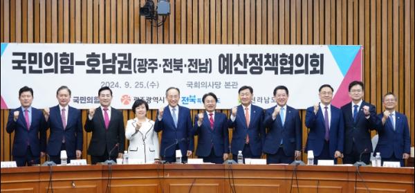 전라남도는 25일 국회에서 국민의힘과 예산정책협의회를 열어 산지 쌀값 안정과 전라남특별자치도 설치, 사회간접자본(SOC) 1조 원 이상 확보 등 지역 현안에 당 차원의 협조와 지원을 적극 요청했다.