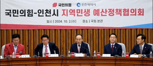인천광역시는 유정복 시장이 2일 국회를 방문해 국민의힘과 예산정책협의회를 개최했다고 밝혔다.