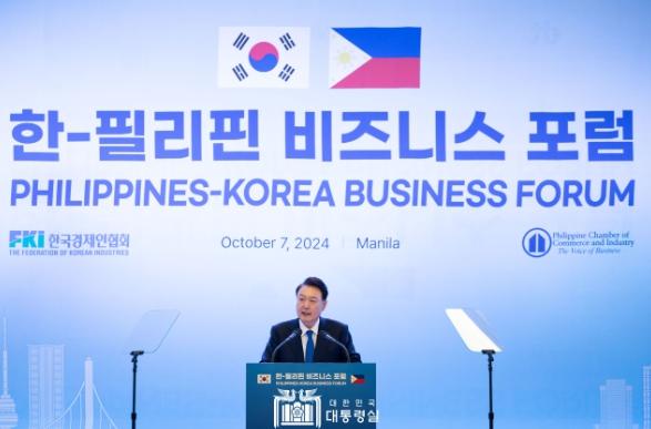 윤석열 대통령은 오늘(현지시간 10. 7, 월) 오후 필리핀 마닐라 시내 호텔에서 열린 ?한-필리핀 비즈니스 포럼?에 참석했다. 대통령의 국빈 방문을 계기로 열린 오늘 행사에는 양국 경제인뿐만 아니라 페르디난드 로무알데즈 마르코스 주니어 필리핀 대통령도 함께 참석해 자리를 빛냈다.