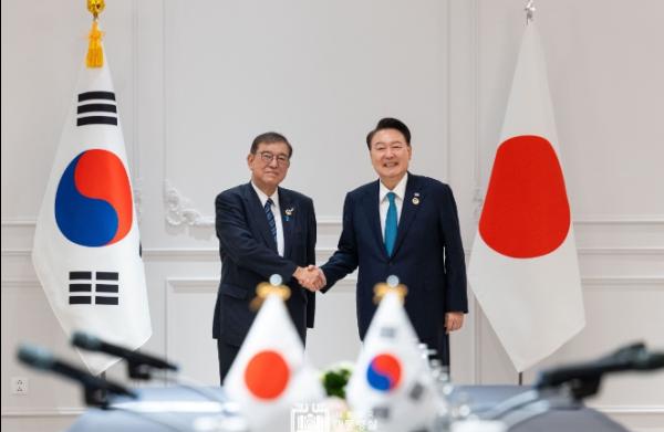 아세안 관련 정상회의 참석차 라오스 비엔티안을 방문 중인 윤석열 대통령은 오늘(현지시간 10. 10, 목) 15시 45분부터 16시 25분까지 약 40분간 이시바 시게루(石破 茂) 일본 총리와 한일 정상회담을 가졌다.