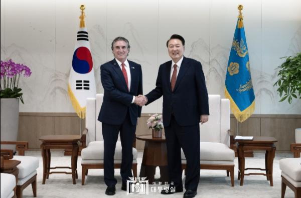 윤석열 대통령은 10월 16일 오후 '더그 버검(Doug Burgum)' 미국 노스다코타 주지사를 접견하고, 한-노스다코타州 간 협력 확대와 한미동맹 발전 방안에 대해 의견을 교환했다.