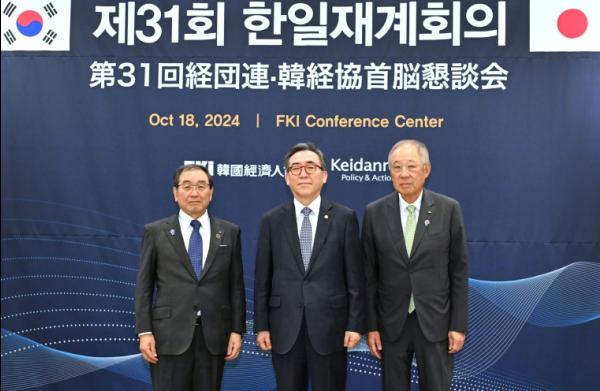마지막으로, 조 장관은 '한·일 재계회의'가 기업 차원에서 미래지향적 양국 협력방안을 설계하는 것은 우리 미래세대의 기대에 부응하는 것이기도 하다면서, '한·일 재계회의'가 양국간 협력 증진에 계속 기여해 줄 것을 당부했다.