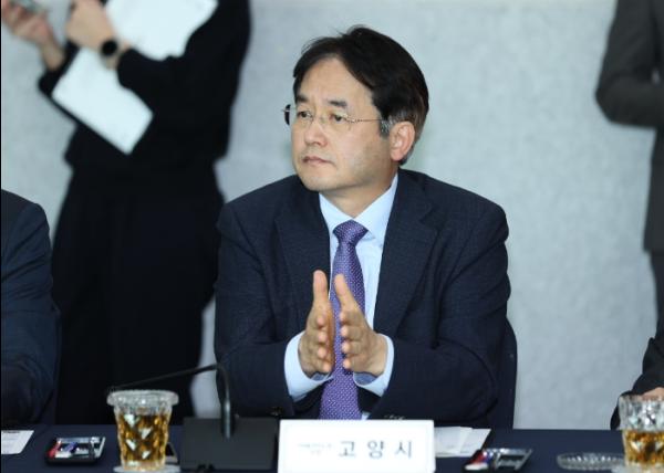 이동환 고양특례시장은 11일 경기도청에서 개최한 경기도지사-시장·군수 정책간담회에서 고양시민의 염원인 K-컬처밸리의 신속한 정상화와 고양시 청사 이전사업의 공정한 투자심사를 강력하게 요청했다.